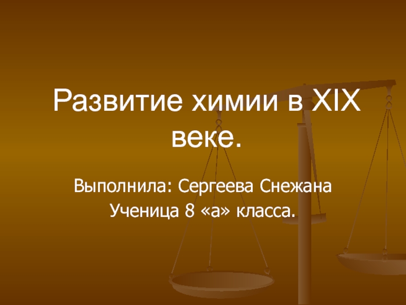 Развитие химии в ХIХ веке.Выполнила: Сергеева СнежанаУченица 8 «а» класса.