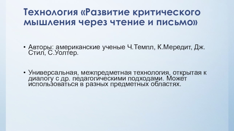 Слайд 7Технология «Развитие критического мышления через чтение и письмо»