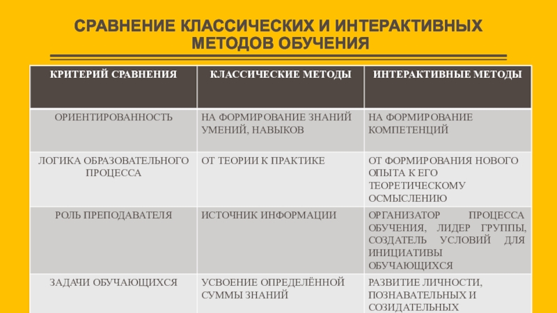 Слайд 5СРАВНЕНИЕ КЛАССИЧЕСКИХ И ИНТЕРАКТИВНЫХ МЕТОДОВ ОБУЧЕНИЯ