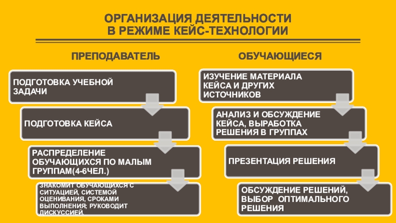 ОРГАНИЗАЦИЯ ДЕЯТЕЛЬНОСТИ  В РЕЖИМЕ КЕЙС-ТЕХНОЛОГИИПРЕПОДАВАТЕЛЬОБУЧАЮЩИЕСЯ