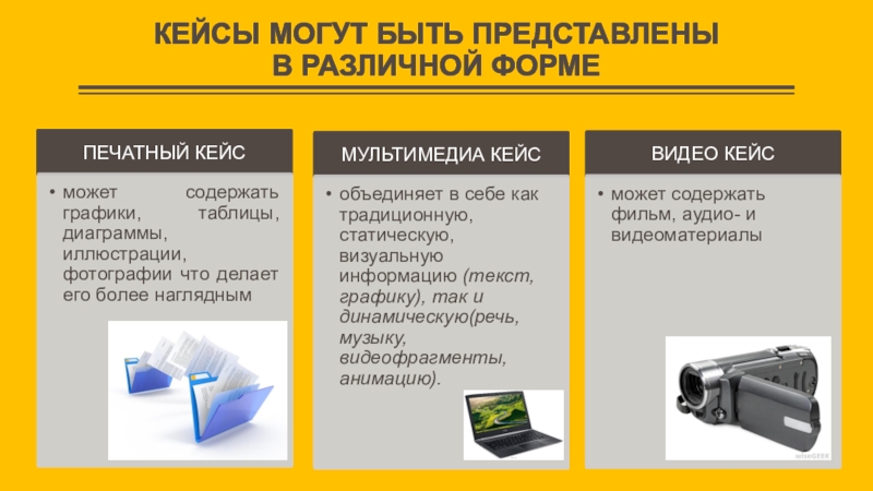 Слайд 8КЕЙСЫ МОГУТ БЫТЬ ПРЕДСТАВЛЕНЫ В РАЗЛИЧНОЙ ФОРМЕ