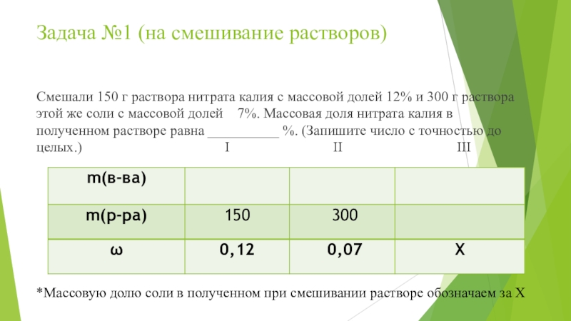 *Массовую долю соли в полученном при смешивании растворе обозначаем за X