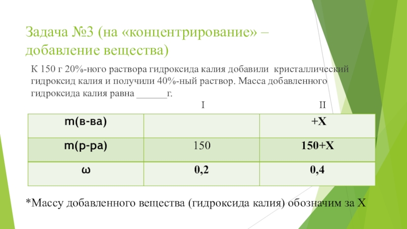 *Массу добавленного вещества (гидроксида калия) обозначим за X