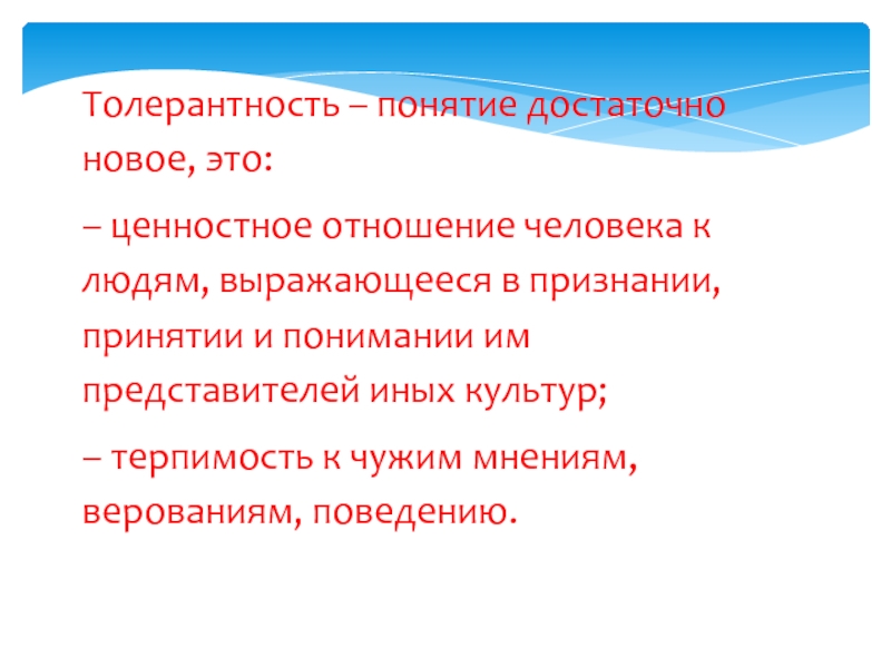 Слайд 14Толерантность – понятие достаточно новое, это: