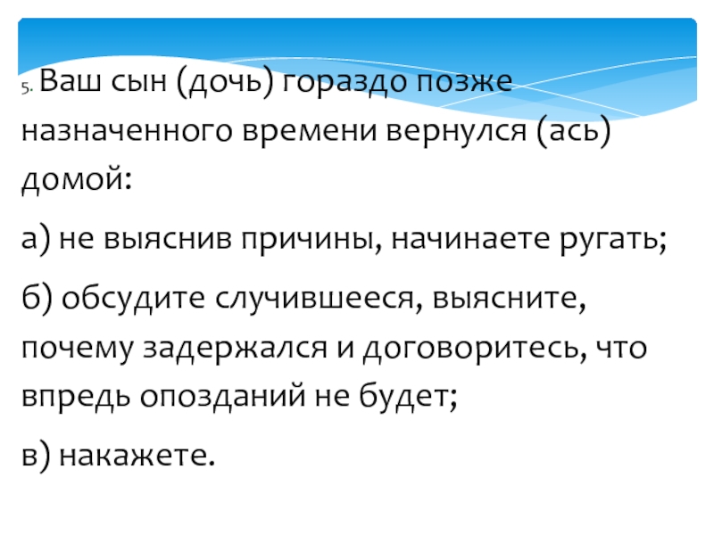 Слайд 125. Ваш сын (дочь) гораздо позже назначенного времени вернулся (ась) домой:
