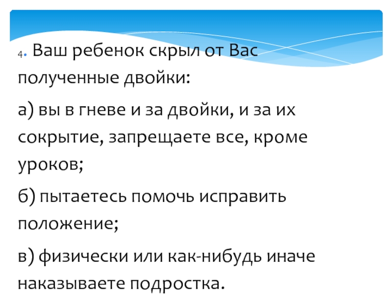 Слайд 114. Ваш ребенок скрыл от Вас полученные двойки: