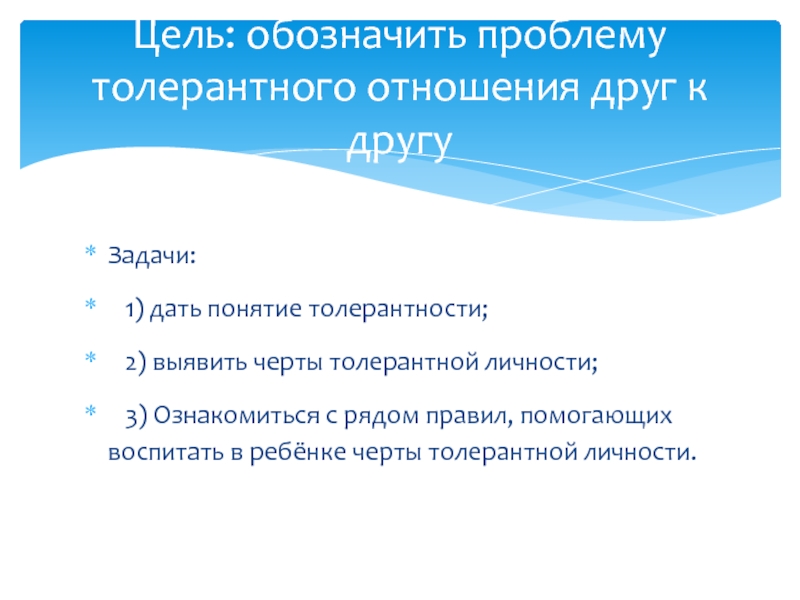 Цель: обозначить проблему толерантного отношения друг к другу