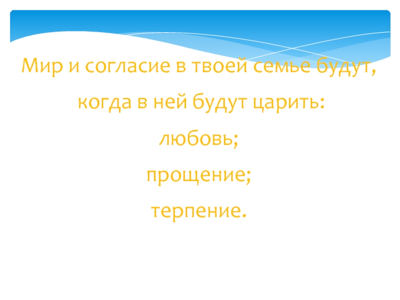 Слайд 20Мир и согласие в твоей семье будут,