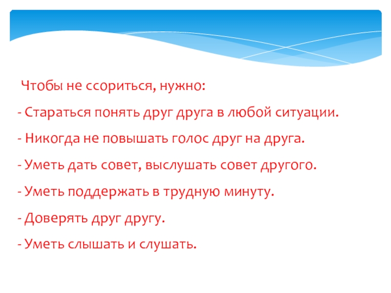 Слайд 17 Чтобы не ссориться, нужно: