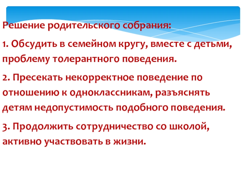 Слайд 19Решение родительского собрания: