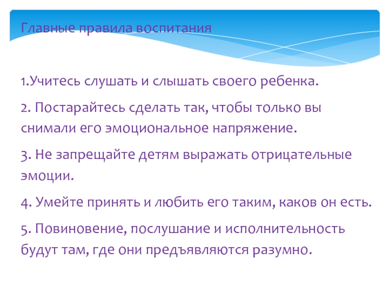 Слайд 16Главные правила воспитания