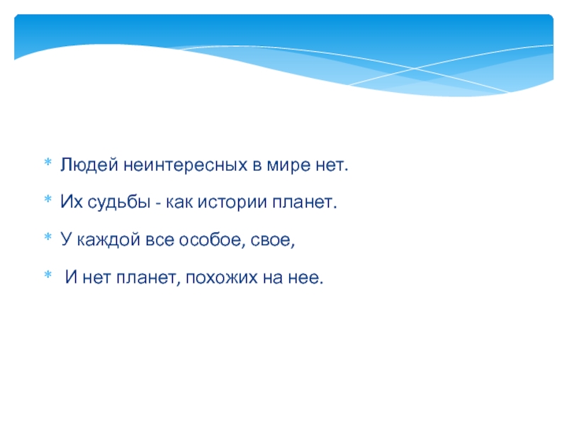 Слайд 3Людей неинтересных в мире нет.