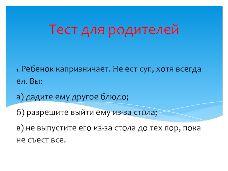 Слайд 81. Ребенок капризничает. Не ест суп, хотя всегда ел. Вы: