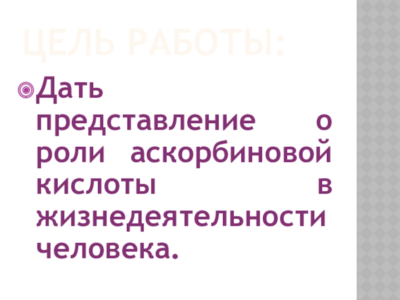 Дать представление о роли аскорбиновой кислоты в жизнедеятельности человека.