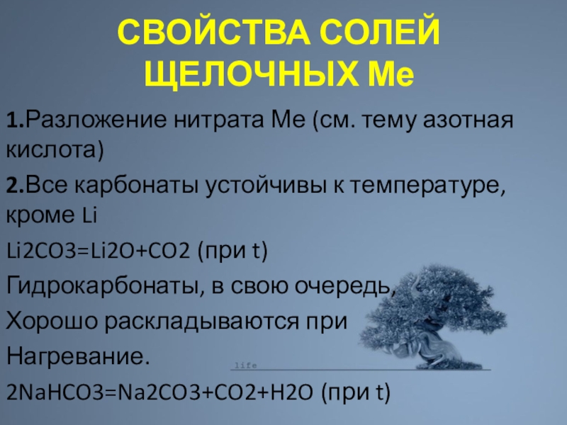 Слайд 13СВОЙСТВА СОЛЕЙ ЩЕЛОЧНЫХ Ме