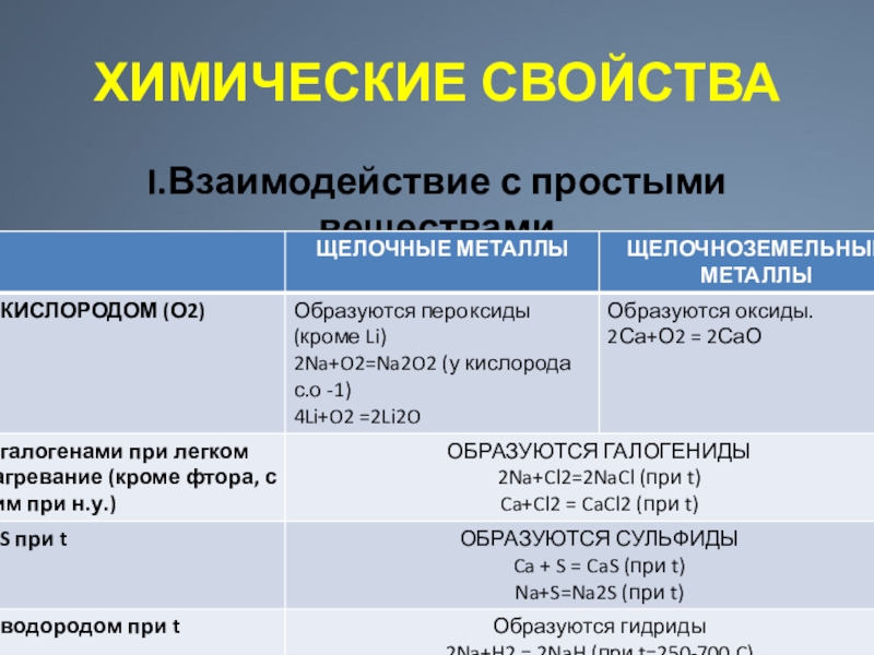 ХИМИЧЕСКИЕ СВОЙСТВАI.Взаимодействие с простыми веществами