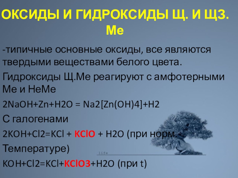 ОКСИДЫ И ГИДРОКСИДЫ Щ. И ЩЗ. Ме -типичные основные оксиды, все являются твердыми веществами белого цвета. Гидроксиды
