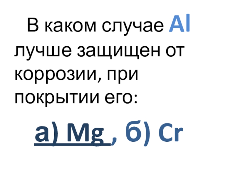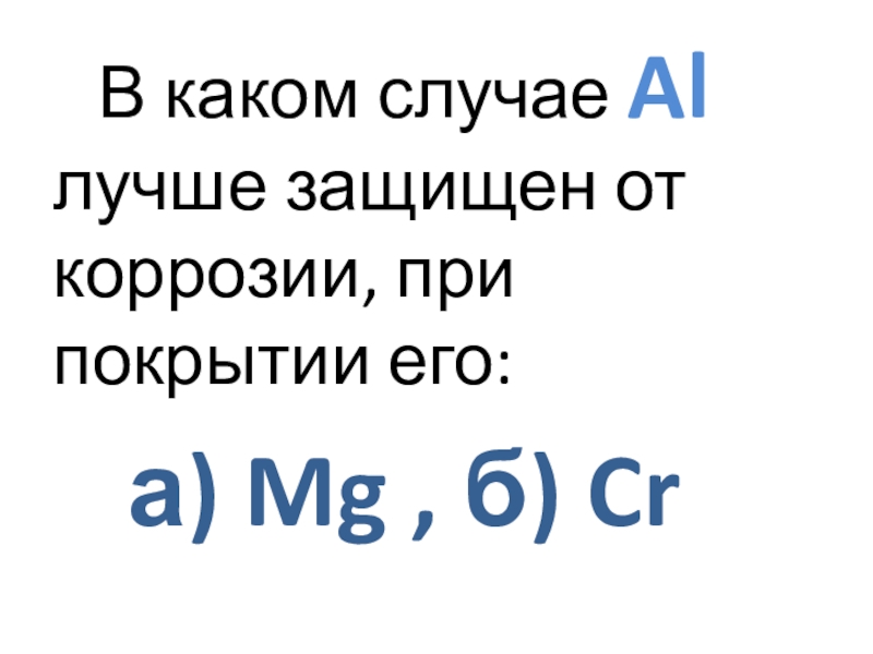 Слайд 7В каком случае Al лучше защищен от коррозии, при покрытии его: