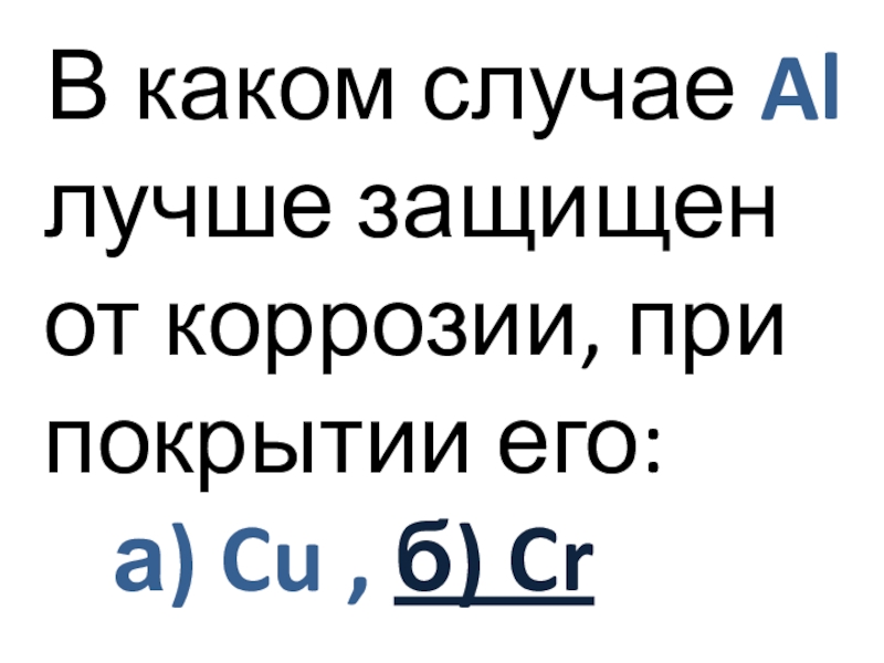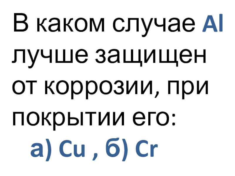 Слайд 6В каком случае Al лучше защищен от коррозии, при покрытии его: