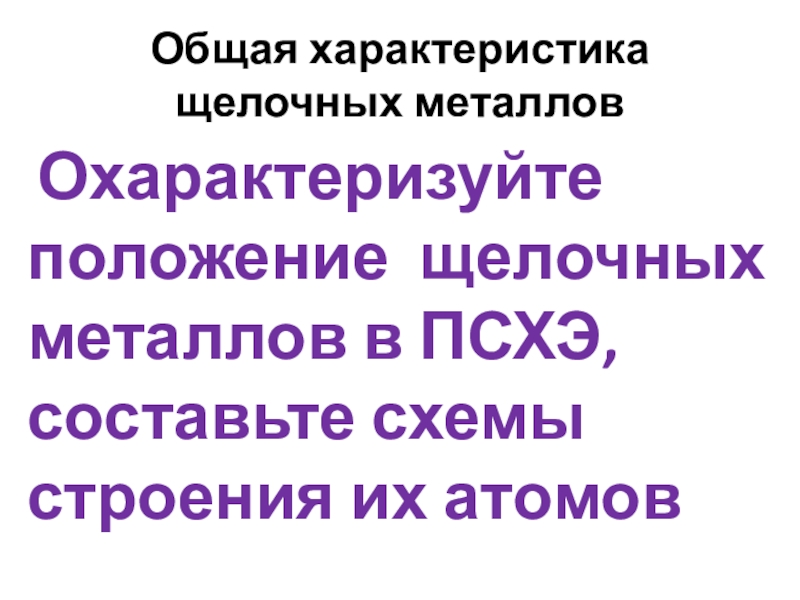 Общая характеристика щелочных металлов Охарактеризуйте положение щелочных металлов в ПСХЭ, составьте схемы строения их атомов