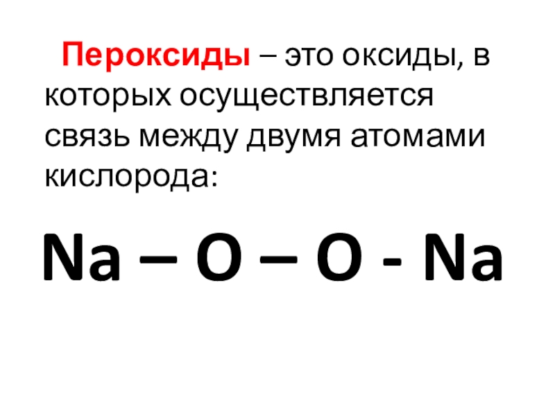 Пероксиды – это оксиды, в которых осуществляется связь между двумя атомами кислорода:Na – O – O