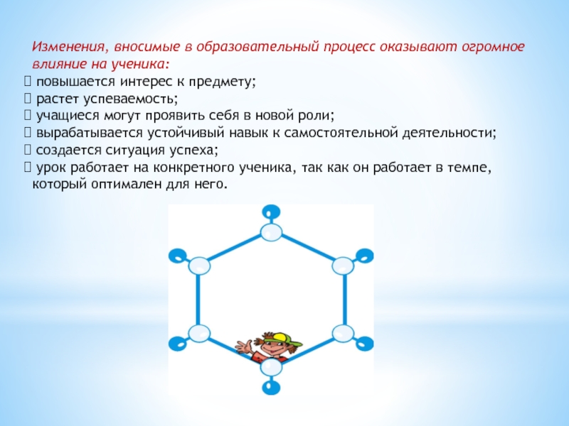 Слайд 37Изменения, вносимые в образовательный процесс оказывают огромное влияние на ученика: