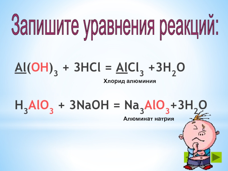 Слайд 43Гидроксид алюминия можно записать как основание и как кислоту