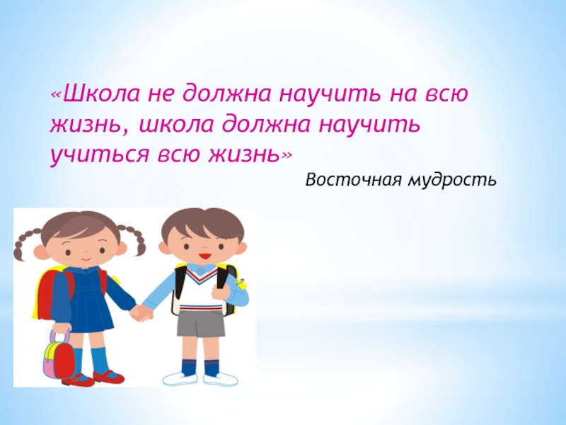 Слайд 4«Школа не должна научить на всю жизнь, школа должна научить учиться