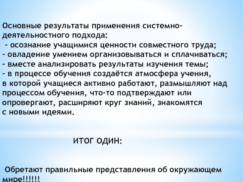 Слайд 13Основные результаты применения системно-деятельностного подхода:
