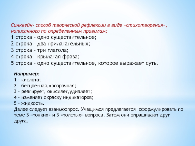 Слайд 35Синквейн- способ творческой рефлексии в виде «стихотворения», написанного по определенным правилам: