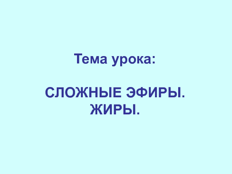 Слайд 1Тема урока: СЛОЖНЫЕ ЭФИРЫ. ЖИРЫ.