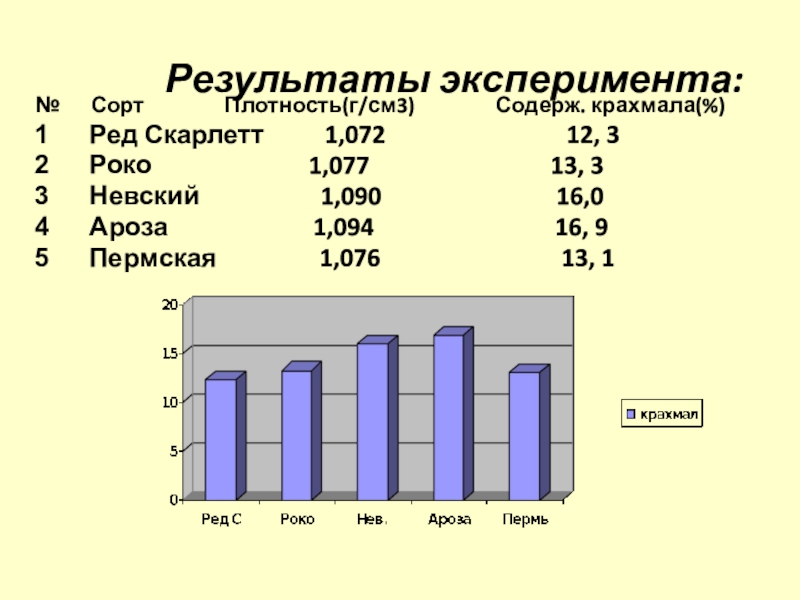 Плотность(г/см3) Содерж. крахмала(%)