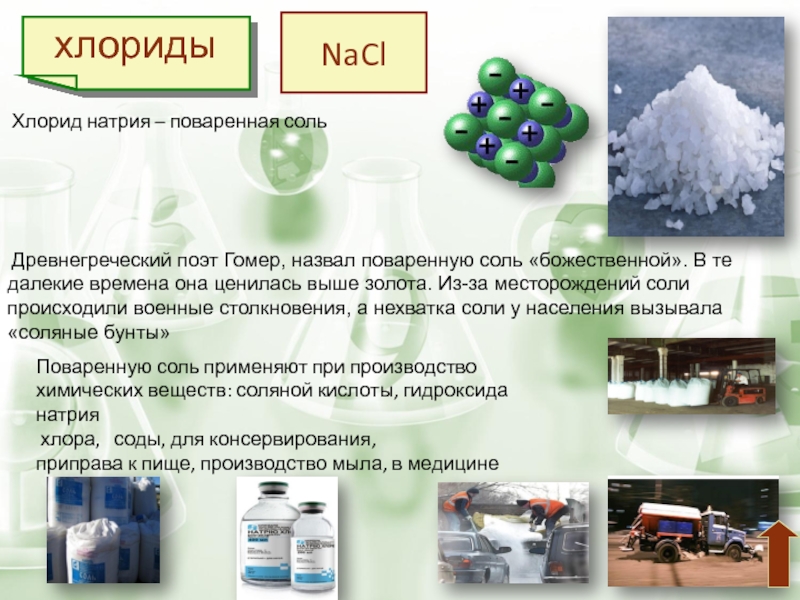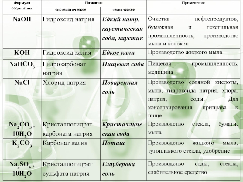 Поваренную соль применяют при производство химических веществ: соляной кислоты, гидроксида натрия