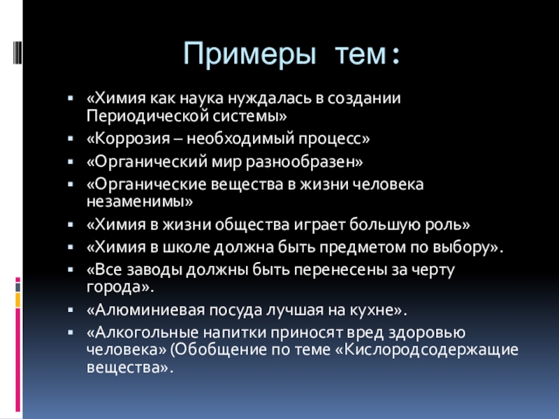 «Алкогольные напитки приносят вред здоровью человека» (Обобщение по теме «Кислородсодержащие вещества».