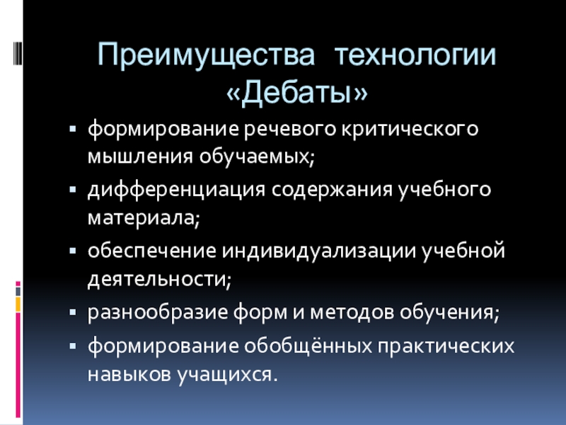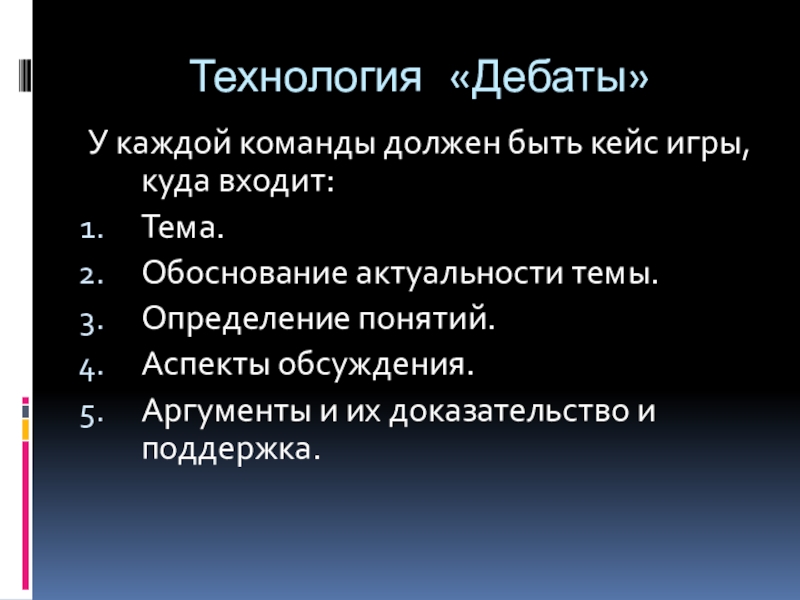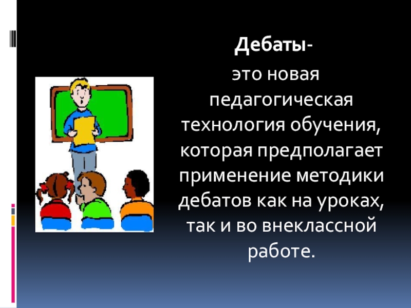 это новая педагогическая технология обучения, которая предполагает применение методики дебатов