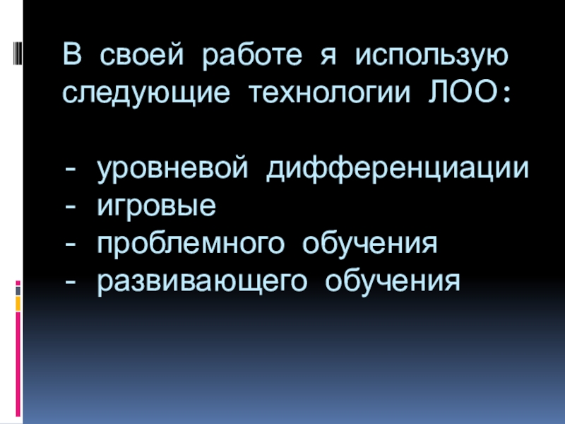 Слайд 4В своей работе я использую следующие технологии ЛОО: