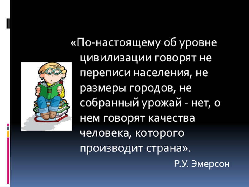 Слайд 2«По-настоящему об уровне цивилизации говорят не переписи населения, не размеры городов,