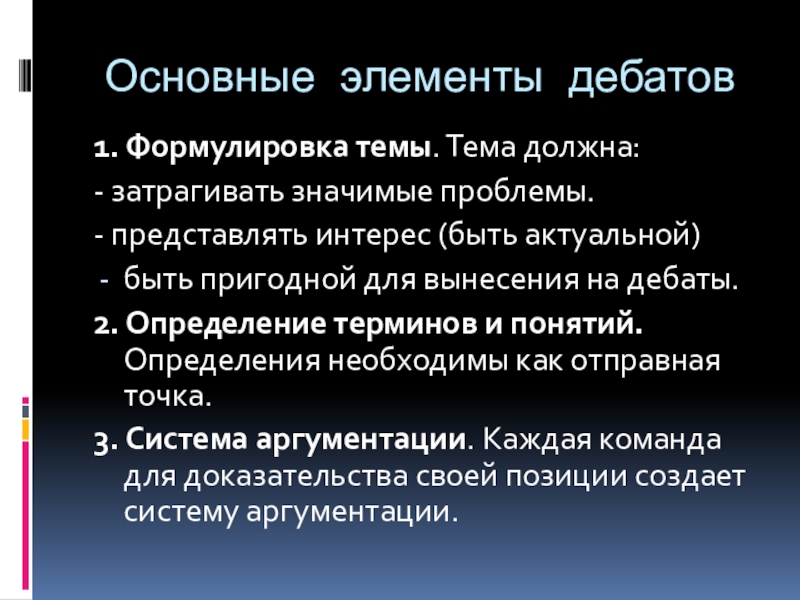Знакомство участников с сущностью, особенностями, правилами организации и проведения дебатов.