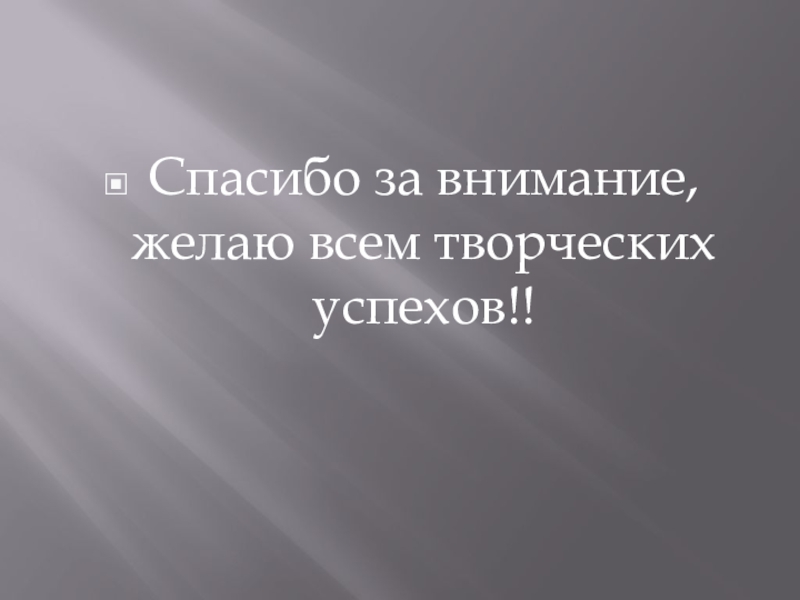 Слайд 13Спасибо за внимание, желаю всем творческих успехов!!