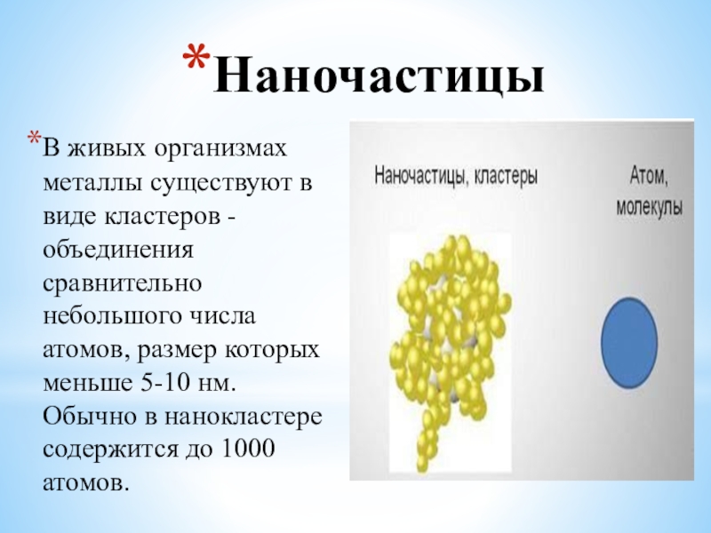 В живых организмах металлы существуют в виде кластеров - объединения сравнительно