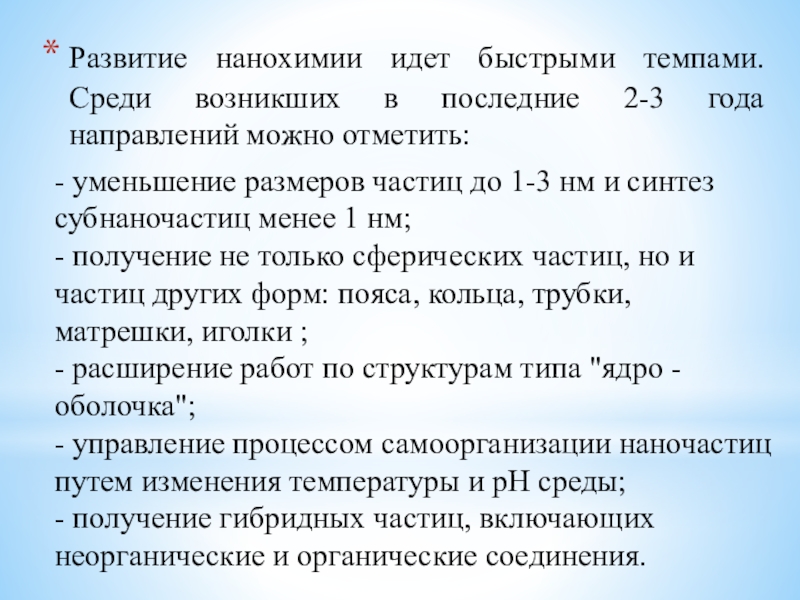 Слайд 17Развитие нанохимии идет быстрыми темпами. Среди возникших в последние 2-3 года