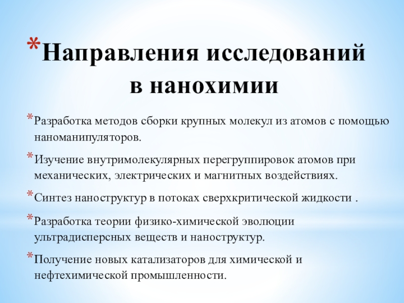 Слайд 13Направления исследований в нанохимии