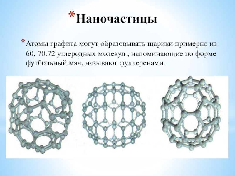 Атомы графита могут образовывать шарики примерно из 60, 70.72 углеродных молекул