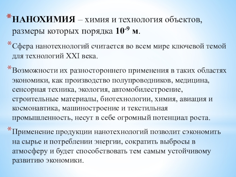 Слайд 3НАНОХИМИЯ – химия и технология объектов, размеры которых порядка 10-9 м.