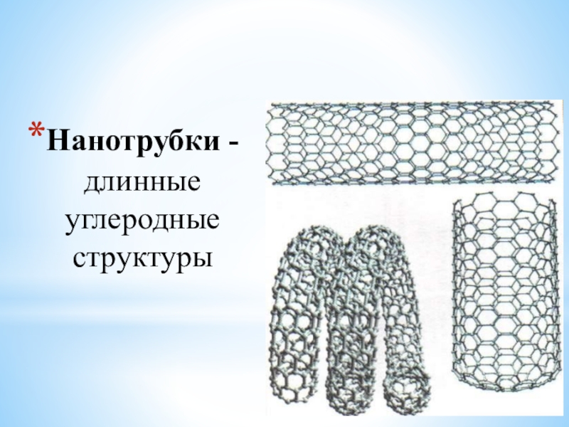 Слайд 5Нанотрубки - длинные углеродные структуры