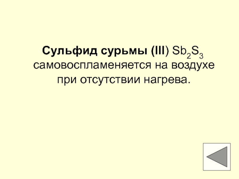 Сульфид сурьмы (III) Sb2S3 самовоспламеняется на воздухе при отсутствии нагрева.