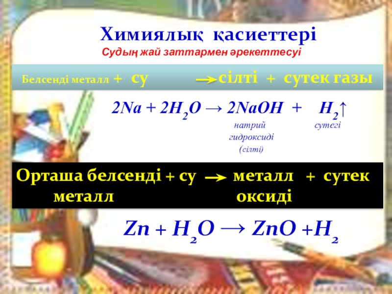 Орташа белсенді + су металл + сутек