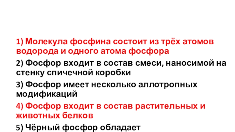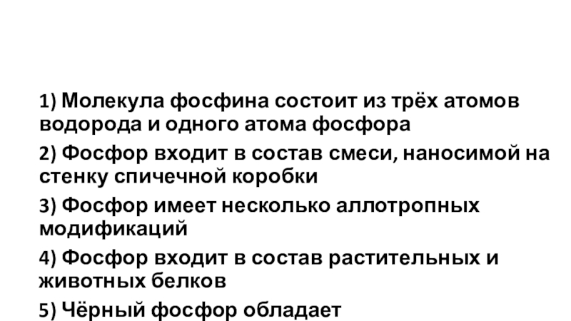 Слайд 251) Молекула фосфина состоит из трёх атомов водорода и одного атома