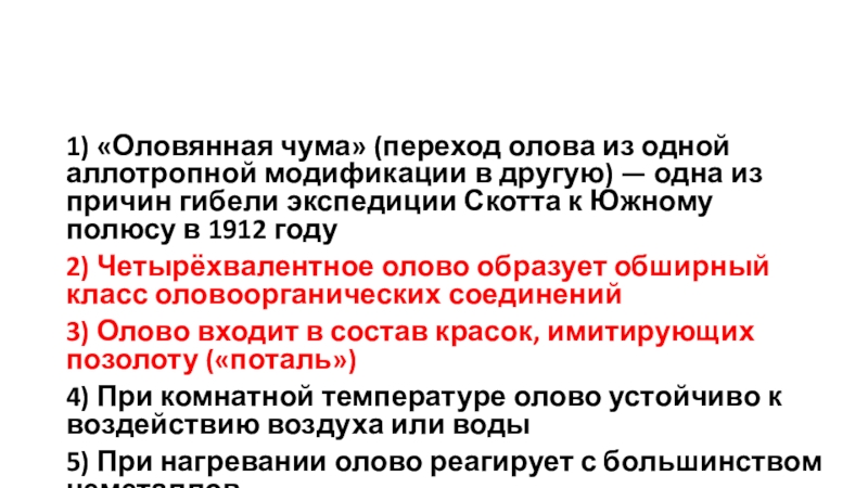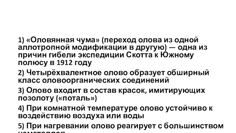 Слайд 221) «Оловянная чума» (переход олова из одной аллотропной модификации в другую)