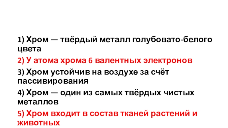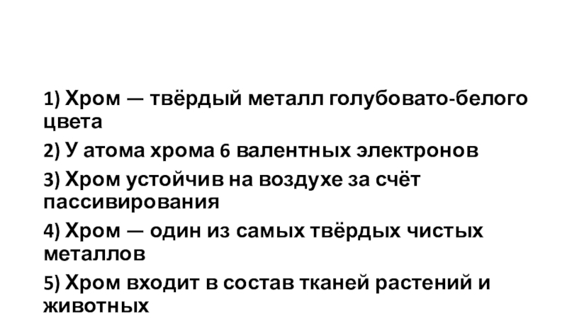 Слайд 141) Хром — твёрдый металл голубовато-белого цвета